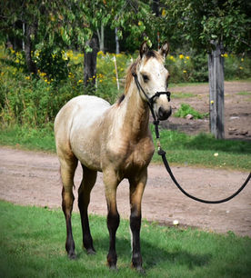 This buckskin filly was born Sept 2025. She is out of 1/2 Saddlebred and half Standardbred mare and The Virginia Coal Miner. This has been an incredible cross. This girl will be big and stout with style and speed. She will make you a great ride and a great broodmare with the Rawhide bloodline. If you are interested and want more information call Nathan Johnson at 256-577-2604.